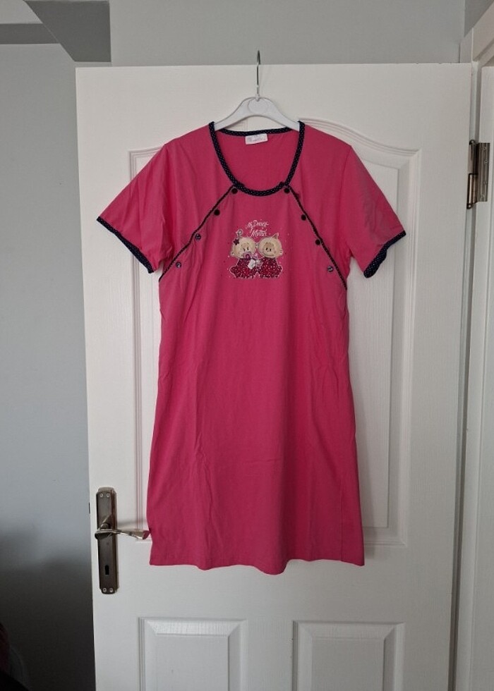 m beden fuşya renk pamuklu kumaş emzirme düğmeli diz kapağı hizasında gecelik. #gecelik #hamile #hamilegecelik