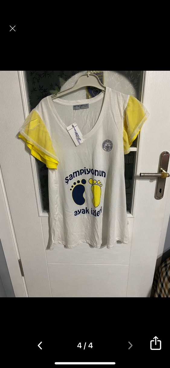 Sarı detaylı kısa kollu, pamuklu, baskılı kadın tişörtü. Rahat kesim, bisiklet yaka, günlük kullanıma uygun. Orjinal sıfır üründür beden büyük olduğu için kullanılamadı
