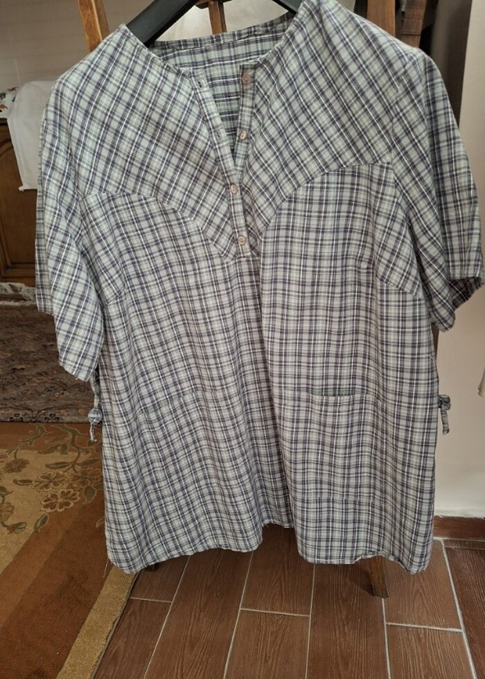 Önden ve arkadan Robali,yandan yırtmaçlı önden iki deron cepli çok rahat bir tunik belden bağlamak için yanda ince kusakli...tiril tiril poplin gomlek iki kolarasi 67 cm.
