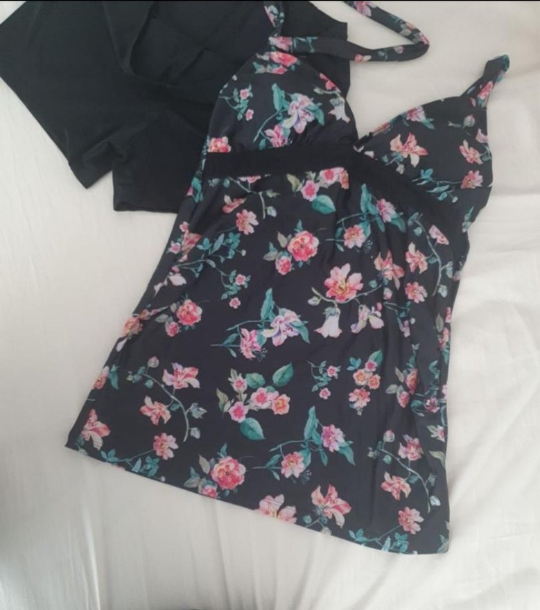 Hamile için Çiçek Desenli Kolsuz Mini Mayo