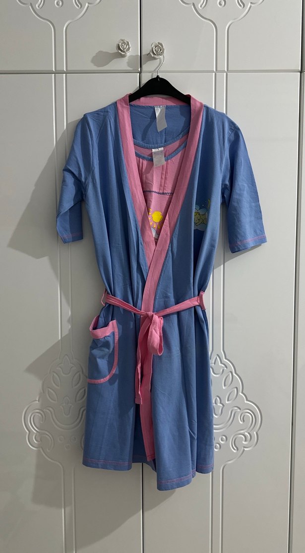 %100 pamuklu, belden kuşaklı sabahlık. 2 parça