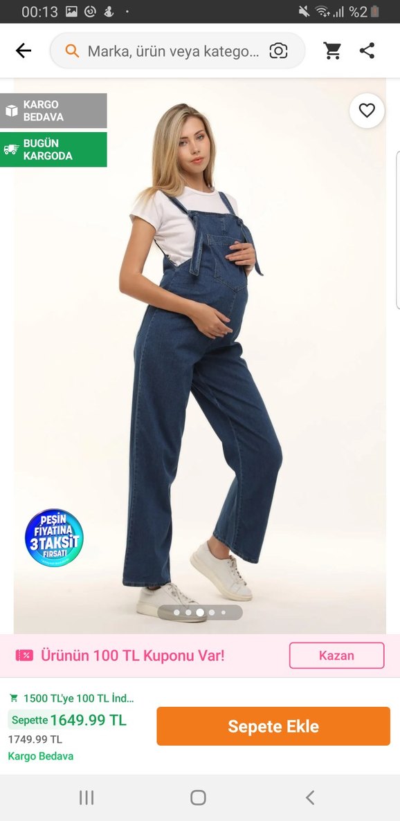 Lacivert denim kumaştan, cok rahat. luvmabelly maekasina ait 1750 guncel fiyati . 29 nisanda aldim 24 mayista dogum uaptim cok az tertemiz kullanildi