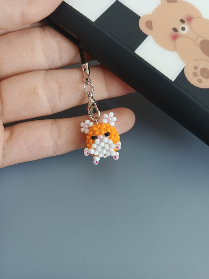el yapımı sevimli hamster telefon charmı . farklı renklerde sipariş verebilirsiniz . #kumboncuk #elemeği #handmade #elişi #boncuk #kawaii #hediye #hediyelik