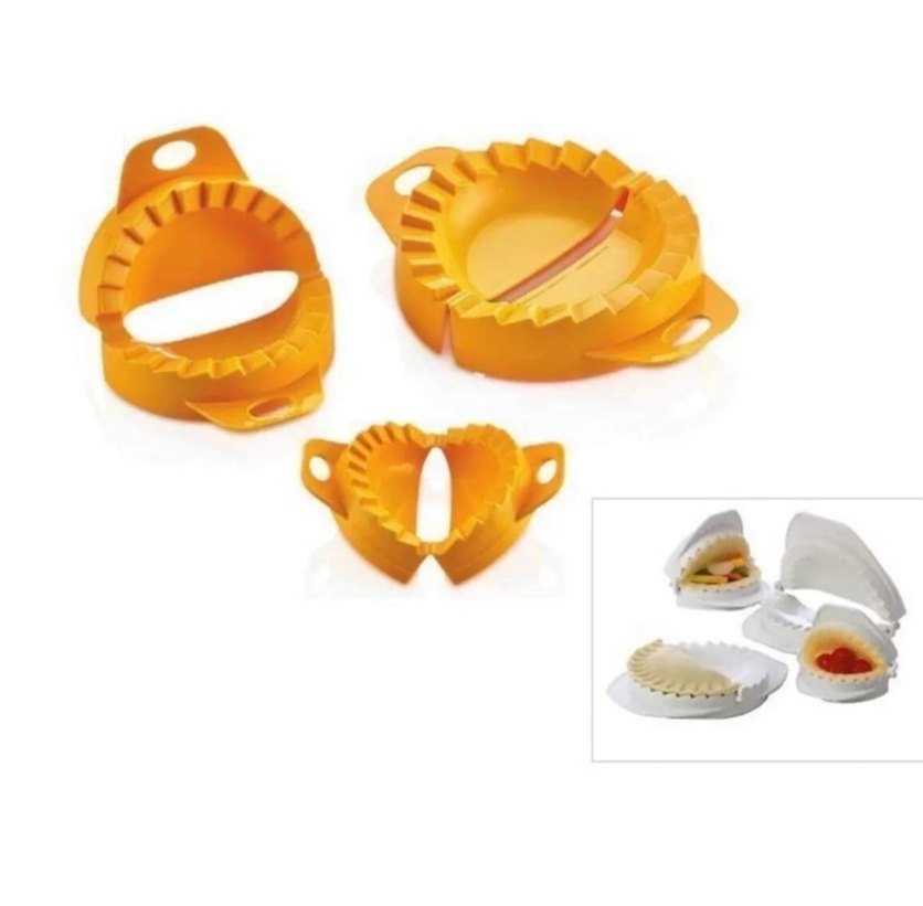 Çiğ Börek Mantı Poğaça Kapama Kalıbı Kapatıcı Aparat 3 lü Çiğ Börek Kalıbı - Ravioli Mold Puf böreği, çiğ börek, poğaça, kurabiye, mantı... Bunları yapmak artık çok ama çok kolay. Kullanımı çok kolay bu set mutfaktaki en büyük yardımcınız olacak. Ürün Kullanımı: Öncelikle hamur kulak memesi kıvamında hazırlanır. Yarım mm kalınlığında açılır. Kalıbın alt keskin kısmı ile kesilir. Kesilen hamur kalıbın dişli kısmına düzgün bir şekilde yerleştirilir. İçerisine malzemesi konarak hamur düzgün bir biçimde kapatılır.