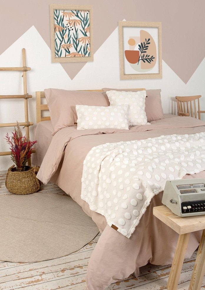 Nakışlı desenlere sahip pastel bej yatak örtüsü seti. göründüğü gibi ve defosuzdur. kırlent kılıfları az kullanıldı, örtü hiç kullanılmadı. iki kırlent kılıfı bir de yatak örtüsünden oluşur. kırlent kılıflarından biri 50×50; öteki 35x50 ya da 30×50. markası hamur.