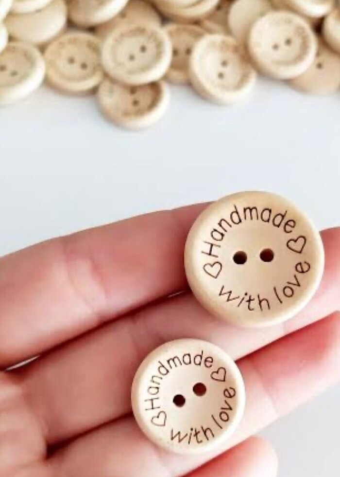 Hand made yazılı ahşap düğme Ürün boyutu 2 cm Paket 100 adettir