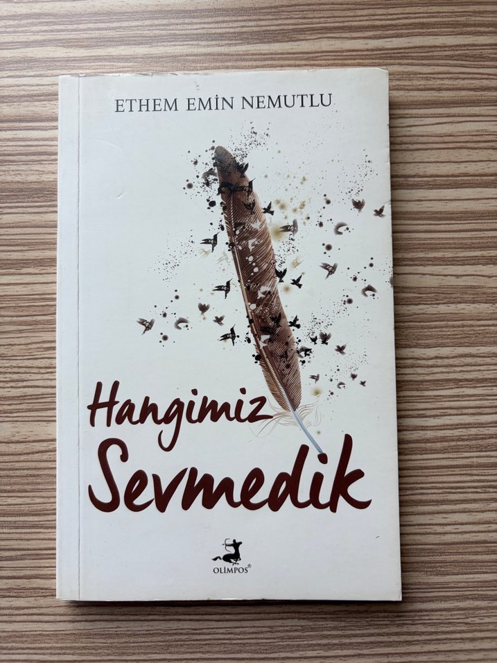 Ethem Emin Nemutlu'nun "Hangimiz Sevmedik" adlı romanı, Olimpos yayınevinden, kapakta tüy ve uçan kuşlar yer alıyor. ️