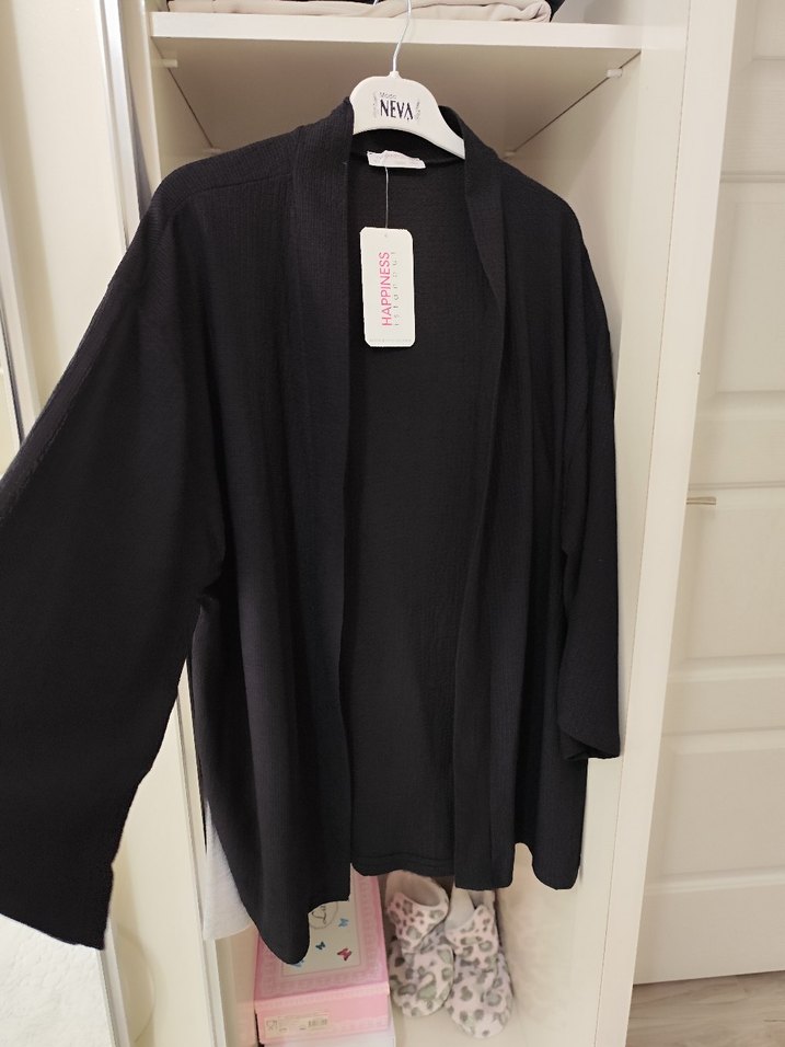 happines Siyah Midi örme kimona