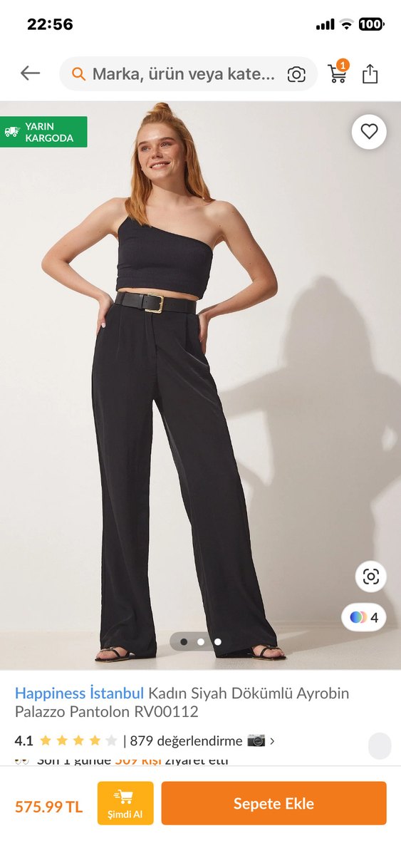 Happiness Istanbul'dan siyah, bel kemerli, dökümlü ayrobin kumaştan palazzo pantolon, ofis için uygun.markası belirsz