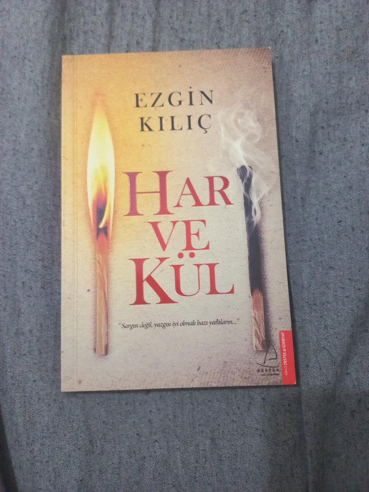 Ezgin Kılıç'ın Har ve Kül adlı romanı, yanan bir kibrit ve tüten bir çubuğun yer aldığı kapak tasarımına sahiptir.