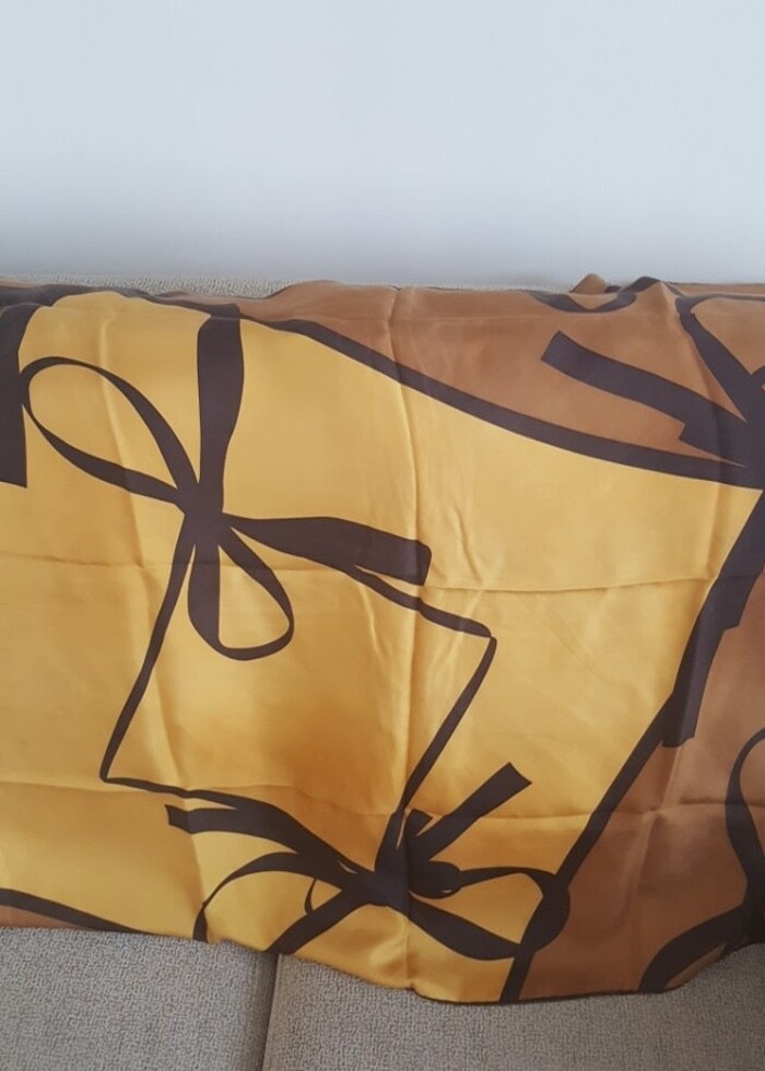 Hardal kahverengi kurdele desenli esarp