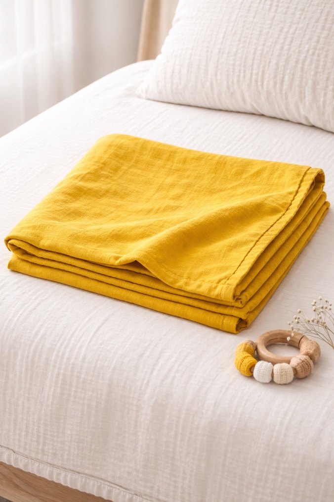 Hardal Renk 2 Katlı Müslin Bebek Battaniyesi | 100x100 cm