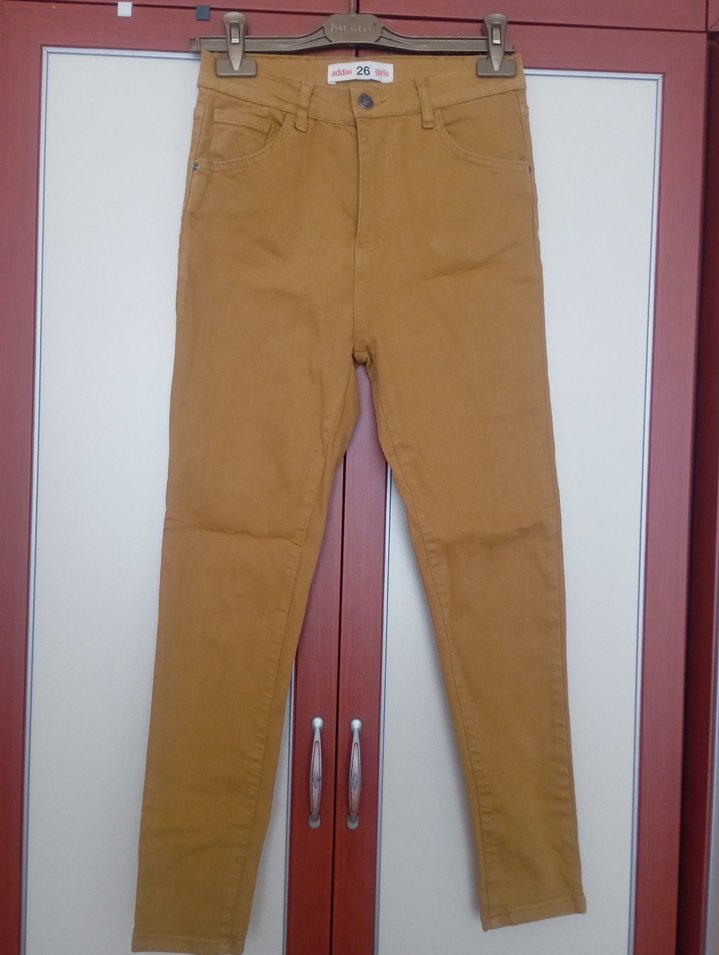 Hardal renkli, kemerli kadın skinny pantolon. Normal midi boy, regular fit ve düz desende, günlük rahat kullanım için uygundur. Hiç kullanmadım