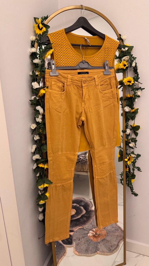 Hardal sarı Kadın kot kesim pantolon ve bluz takım