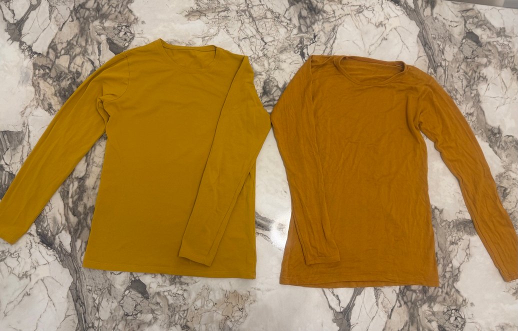 Hardal sarısı 2 adet XS beden penye likralı esnek kumaş uzun kollu tişört badi. Penye ve esnek kumaştan oldukları için çok rahatlar. Giyildiğinde çok şık duruyorlar. İkisinin toplam fiyatıdır. Açık renkli olanın sağ koltuk alt kısım tarafında üç adet küçük delik mevcut son fotoğrafta paylaştım. Başka herhangi bir yırtık sökük vs. yoktur. Fiyatlarını çok uygun tutuyorum. Diğer ürünlerime de bakabilirsiniz ihtiyacınız olan başka bir ürün bulabilirsiniz.
