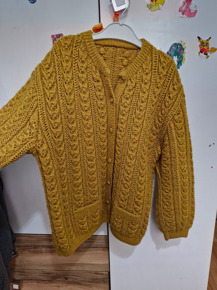 Hardal sarısı el örgüsü hırka