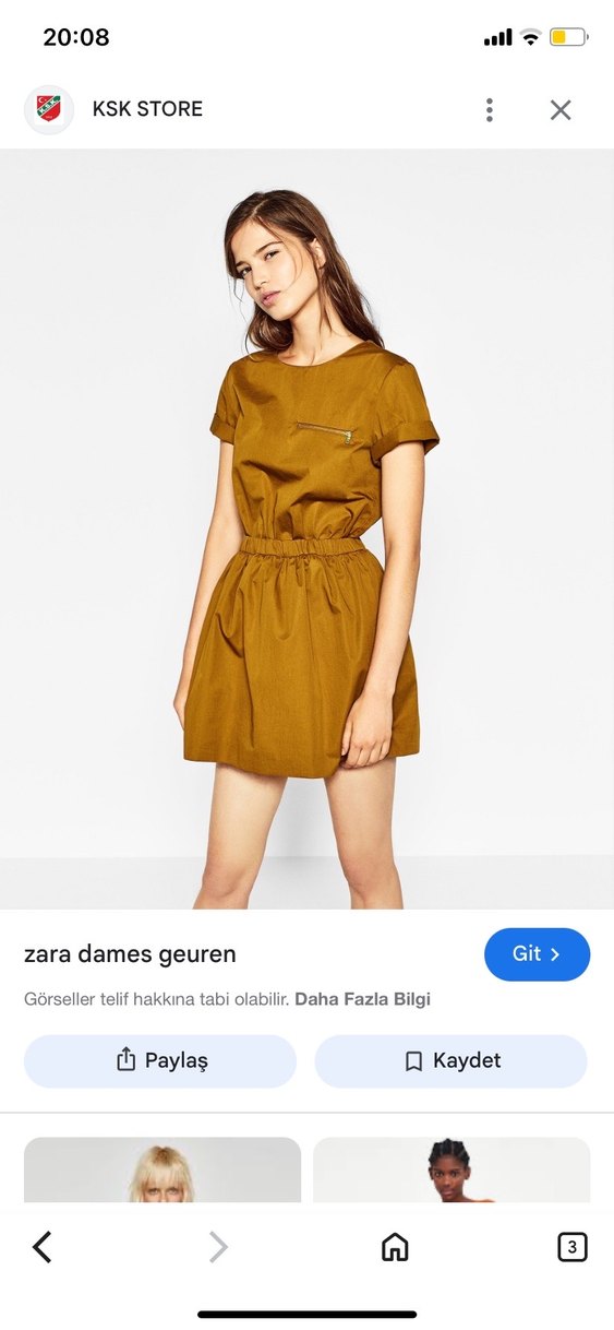 Hardal Zara Kısa Kollu Mini Günlük Elbise