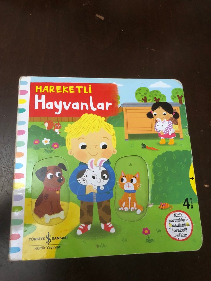 Çocuklar için hareket ettirilebilir hayvan figürleri içeren interaktif bir kitap. Eğlenceli ve öğretici hayvan temalı sayfalar sunar.