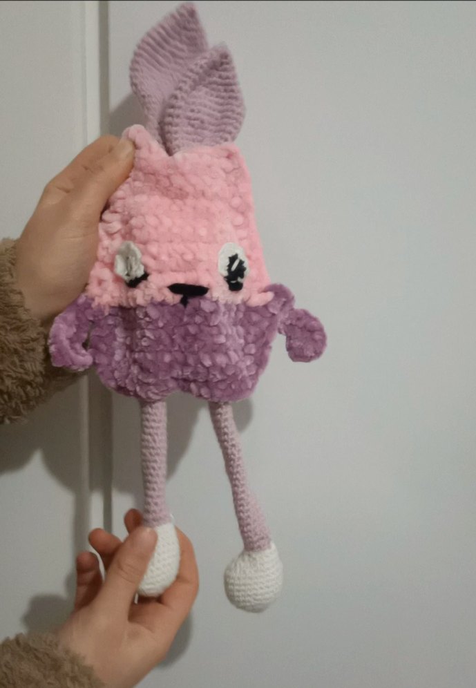 Kadife ip ile örülmüş amigurumi hareketli sevimli tavşan oyuncak