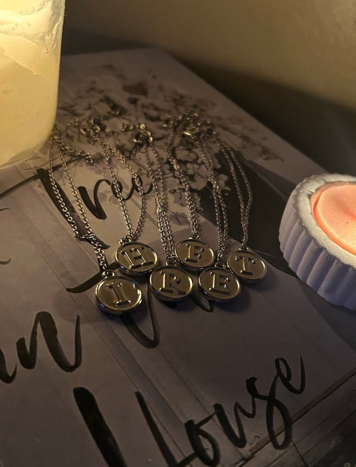 Harf desenli, detaylı zincirli altın renk midi kolye. Vintage tarzıyla günlük kullanıma uygun.