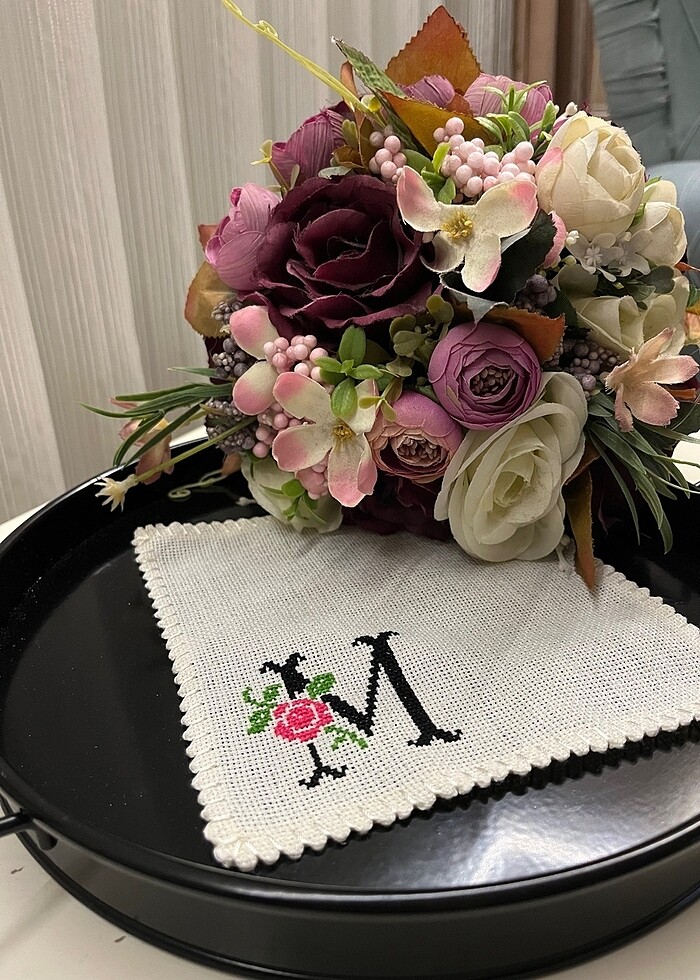 El emeği üründür. Etuval linen kumaşa işlenmektedir. #etamin #harfetamin #peçete #sunum #kahve