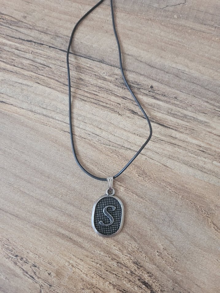 'S' harfi detaylı kolye, günlük sokak modasına vintage bir dokunuş katıyor.