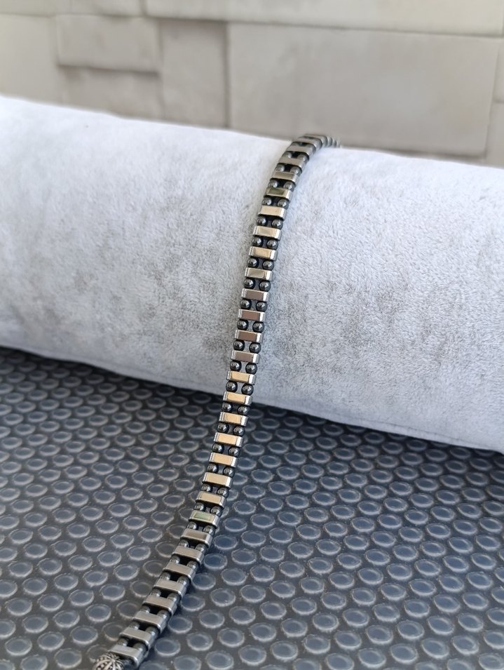 Hatika bir Hematit Doğal Taş Bileklik.Kilit sistemi 925 Ayar Gümüştür.modern ve şık bir erkek bilekliği, gündelik tarz için uygundur.Kıyafetlerinizle birlikte şık zarif bir Kombin oluşturur.Uzunluk ölçüsü Fotoğraflarda Mevcuttur.Diğer İlanlarımada bakınız.Teşekkür Ederim.