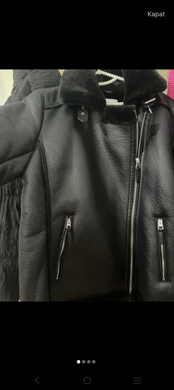 Kürklü detaylı siyah deri biker ceket, keskin yakalı ve fit kesim askılı kollu. Normal midi boyda, fermuarlı ceplidir.