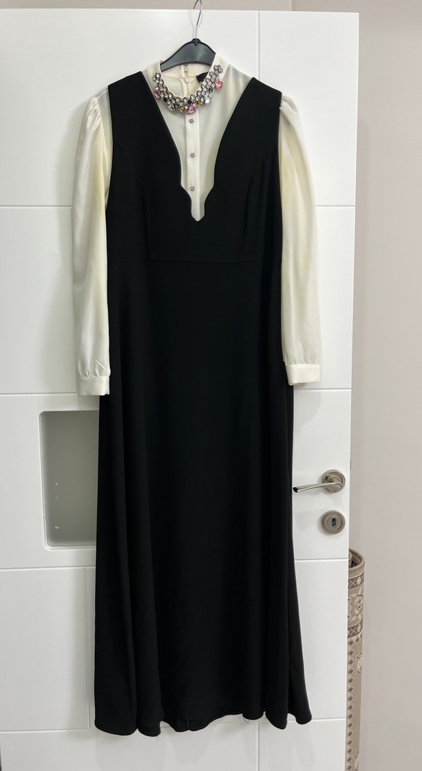 Siyah beyaz sırt detaylı elbise