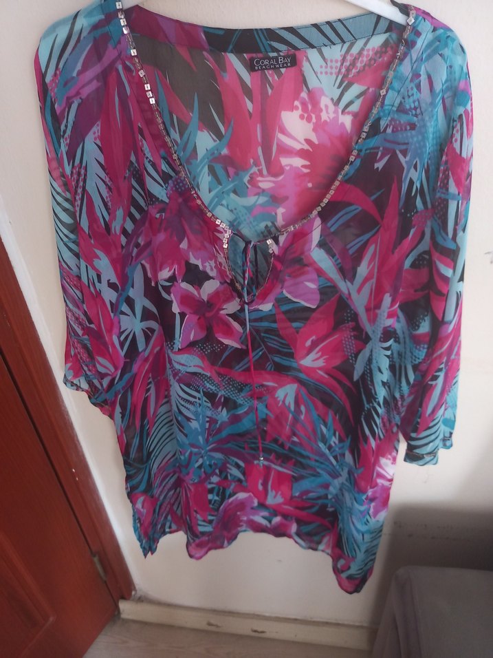 Harika Renkli Plaj Elbisesi.1 kez giyildi sorunu yok payetli çok şık.Renkleri çok canlı.Koltuk altından diğer koltuk altına eni 62cm boyu 89cm rahat salaş model.Hindistandan alındı.#pareo#plajelbisesi#kotşort#jeanşort#kapri#ipekyol#benetton#zara#twist#mayo#bikini#penti#pareo#kısaelbise#midielbise#tayt#tshirt#günlükelbise#india#hindistan#