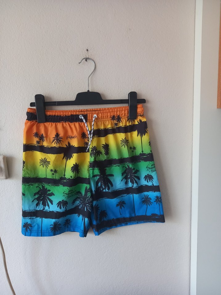 Harika Renkli Şort Mayo.İç astarı var ıslak kalmayı önler,renkleri çok canlı.Bel lastiği esnetmeden 33cm boyu 39cm.1kez giyildi sorunu yok.#nike#adidas#jean#tshirt#beşiktaş#fenerbahçe#galatasaray#eşofman#plajşortu#billabong#12/13#