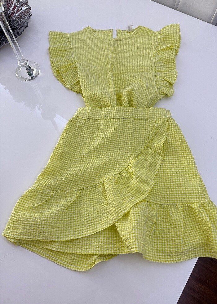 Harika yazlık takım limon sarı yeşil renkte
