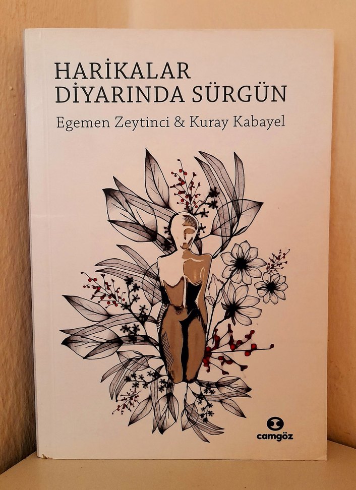 Egemen Zeytinci ve Kuray Kabayel'in Harikalar Diyarında Sürgün kitabı, sürgün ve hayret temalarını işler. Kapakta çiçeklerle çevrili bir figür çizimi yer alır.