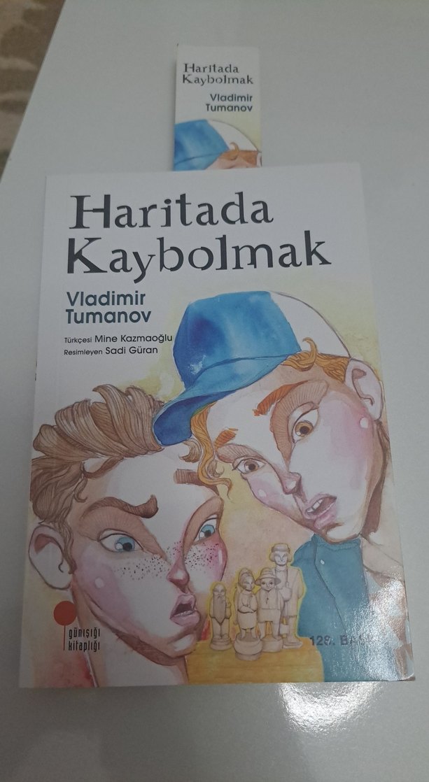 Vladimir Tumanov'un yazdığı, Mine Kazmaoğlu'nun Türkçeleştirdiği ve Sadi Güran'ın resimlediği 'Haritada Kaybolmak' adlı mizah kitabı.