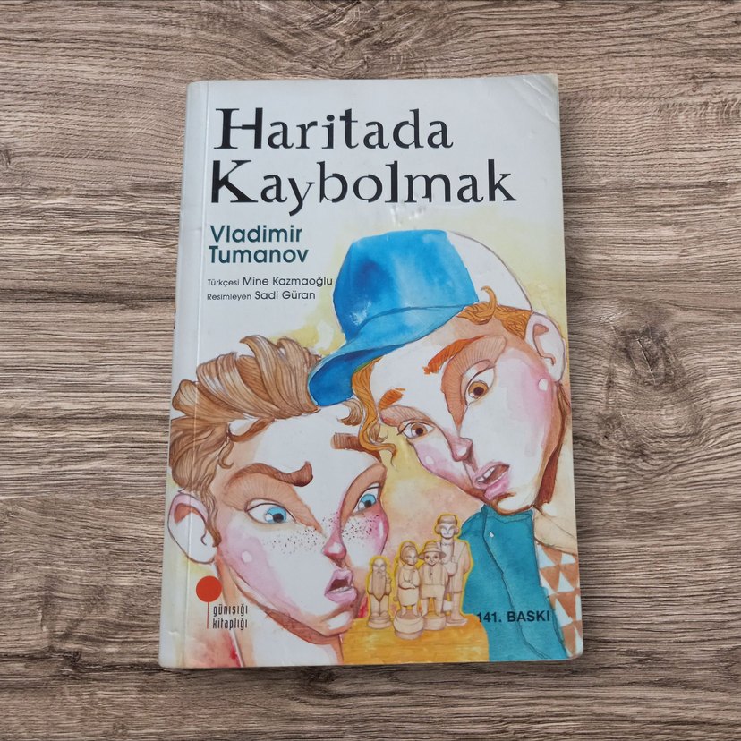 Vladimir Tumanov'un, Mine Kazmaoğlu çevirisi ve Sadi Güran'ın resimleriyle "Haritada Kaybolmak" adlı mizah kitabı.