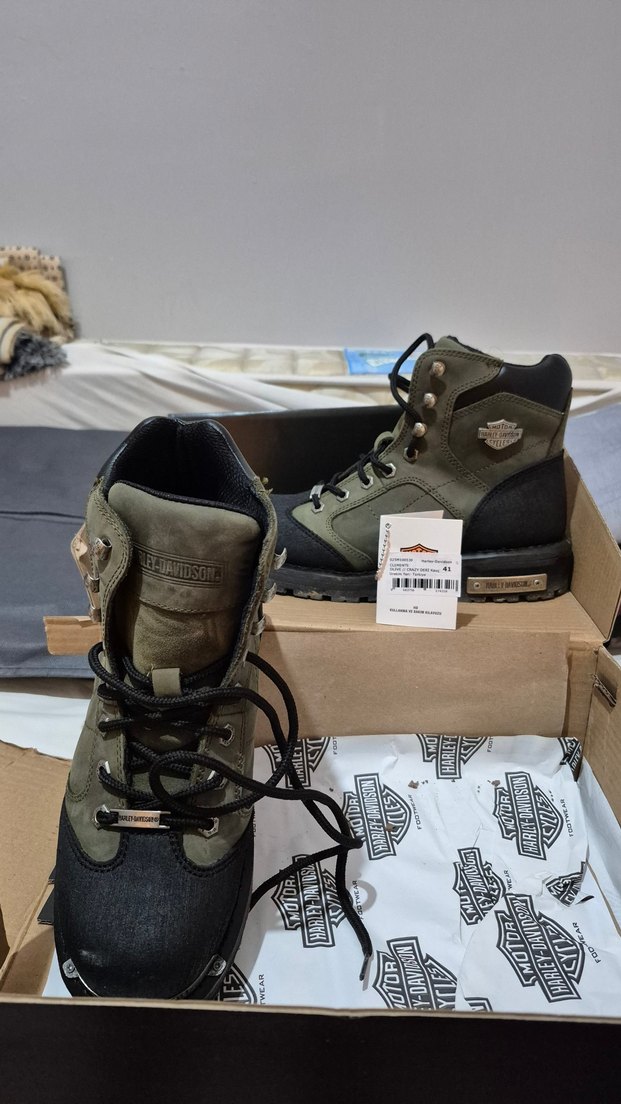 urun bir kez kullanılmıştır. haki ve siyah tonlarda, baskılı detaylı, tokalı erkek biker botları, dayanıklı kauçuk malzemeden ve dış mekan kullanımı için uygundur. ️