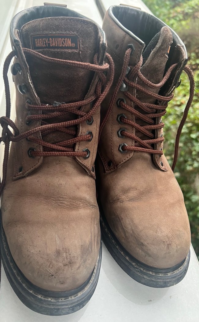 Harley-Davidson marka kahverengi süet erkek biker botları, tokalı ve dayanıklı tasarıma sahip, outdoor ve sokak stiline uygun. Çok İyi durumda, ysadece ön burun ğstünde hafif çizik var bir tane foroda görünüyor oda bakım fırçası ile düzelir
