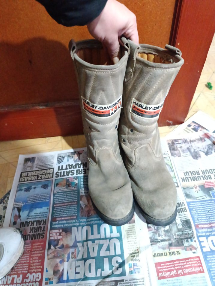 Harley- H D Davidson marka, kahverengi-gri kauçuk malzemeden yapılmış, tokalı biker botlar, günlük kullanıma uygun rock punk havasında.