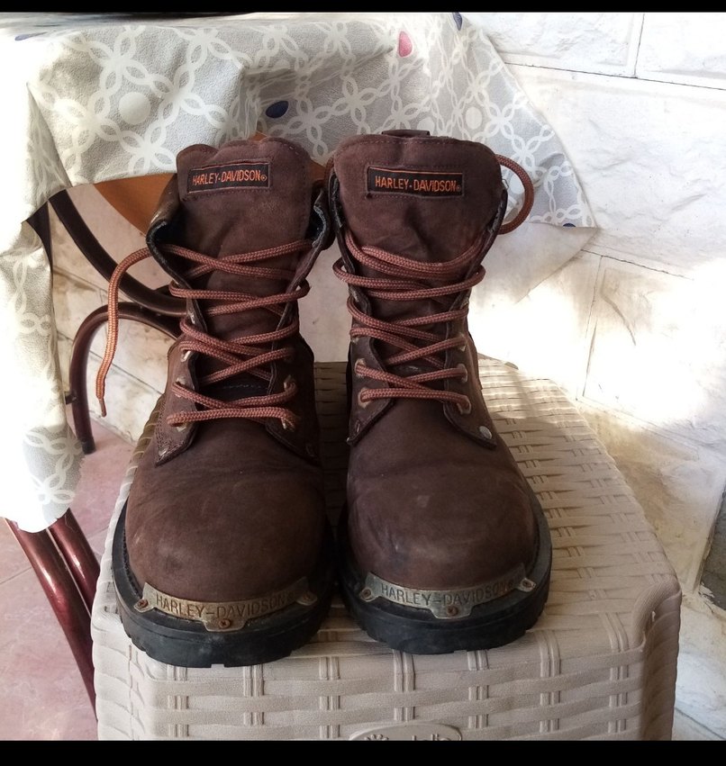 Harley-Davidson marka, koyu kahverengi deri, tokalı, topuklu erkek bot. Günlük kullanıma uygun, desensiz ve rahat bir yapıya sahiptir.