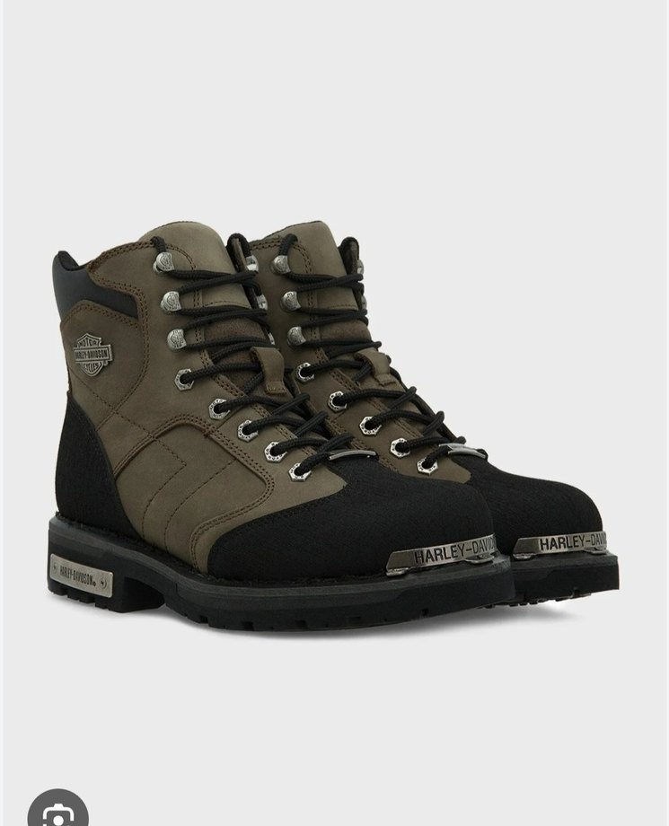 Yepyeni Harley-Davidson marka, kahverengi ve gri tonlarda kamuflaj desenli, kemerli kauçuk erkek biker botları. Günlük kullanım ve sokak stiline uygundur. ️