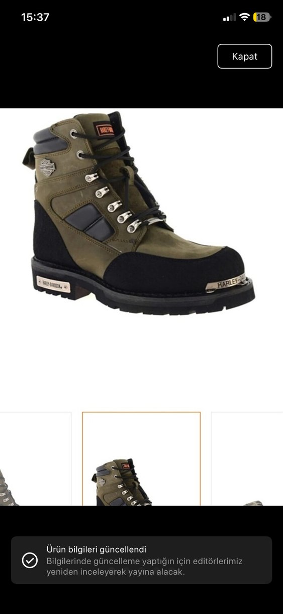 Harley Davidson erkek biker botları, kamuflaj desenli, tokalı tasarımlı ve dayanıklı kauçuk malzemeden yapılmıştır. Gri ve kahverengi tonlarında, sokak stili için uygun. Sezon : Sonbahar - Kış Dış Materyal : Yağlı Deri Taban : Kauçuk beden:43 Topuk yüksekliği : 3.5 cm ürünü 1-2 defa giyildi ürün ayağa küçük geldi değişim olmadığı için satıyorum