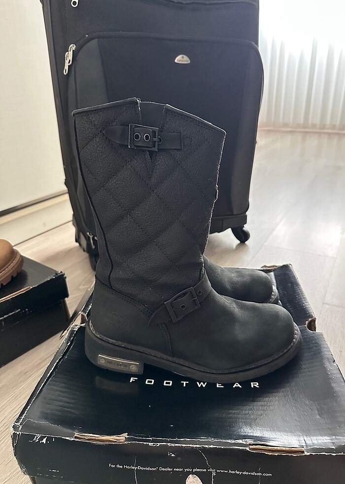 Siyah nubuk çizme, gözüktüğü gibi, her detayını ekledim tokalarında renk atması olmus botlar birbirine değdiğinden herhalde