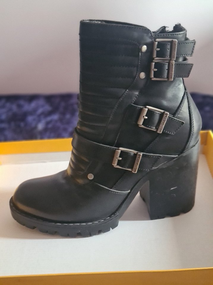 Harley Davidson Siyah Deri Blok Topuklu Bot