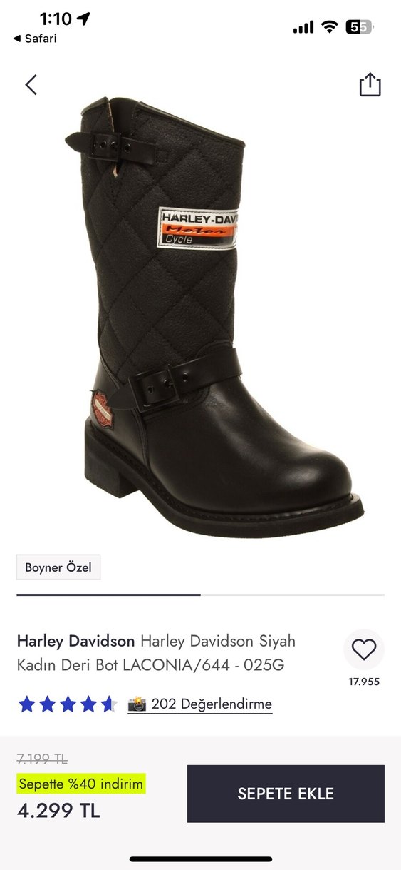 Harley Davidson Siyah Deri Kadın Biker Bot