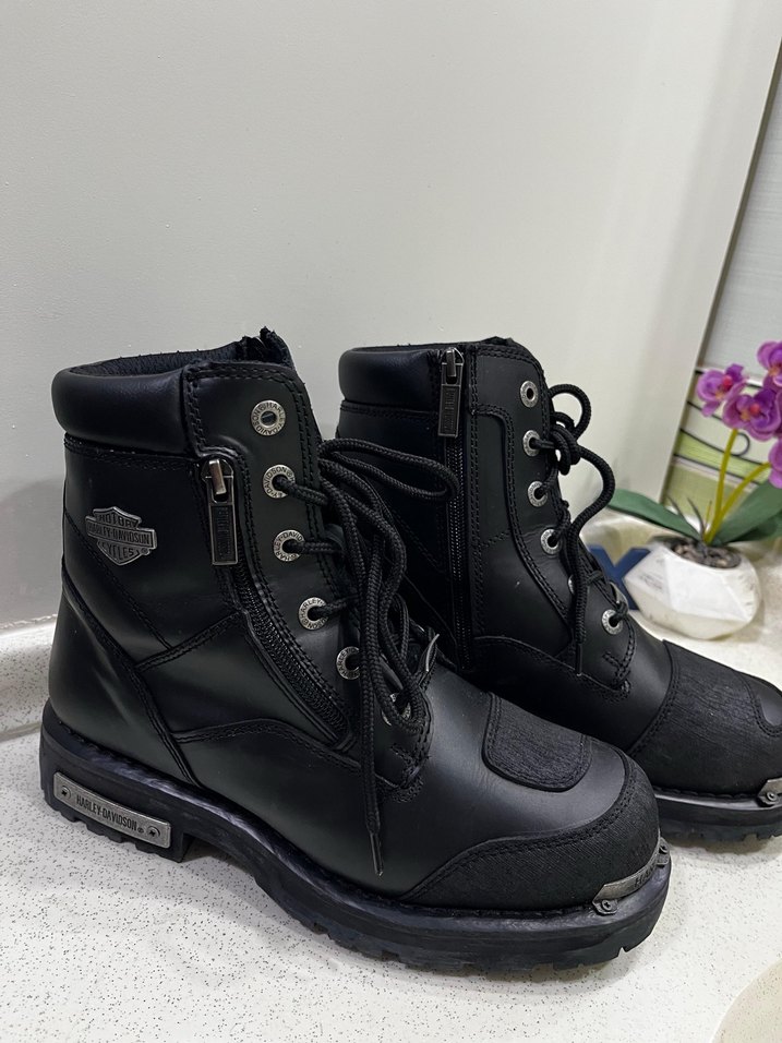 Siyah deri biker botlar, tokalı ve yan fermuarlı detaylara sahip, günlük kullanım için uygun, rock punk tarzı yansıtan sağlam tasarım. 2/3 kez giyildi hasarsız temız ürün pıyasa fıyatının altında satış yapıyorum cıddı alıcılar yazsın lütfen