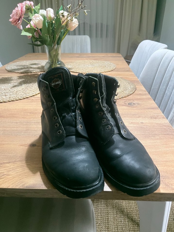 Tokalı siyah deri erkek botları, günlük kullanım için uygun, grunge punk tarzını yansıtan desen içermeyen botlardır.