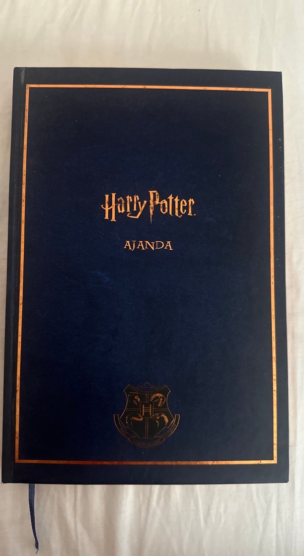 Harry Potter temalı ajanda, koyu renkli kapak ve altın detaylarla Hogwarts amblemini içerir. Programınızı düzenlemek için kullanılır.