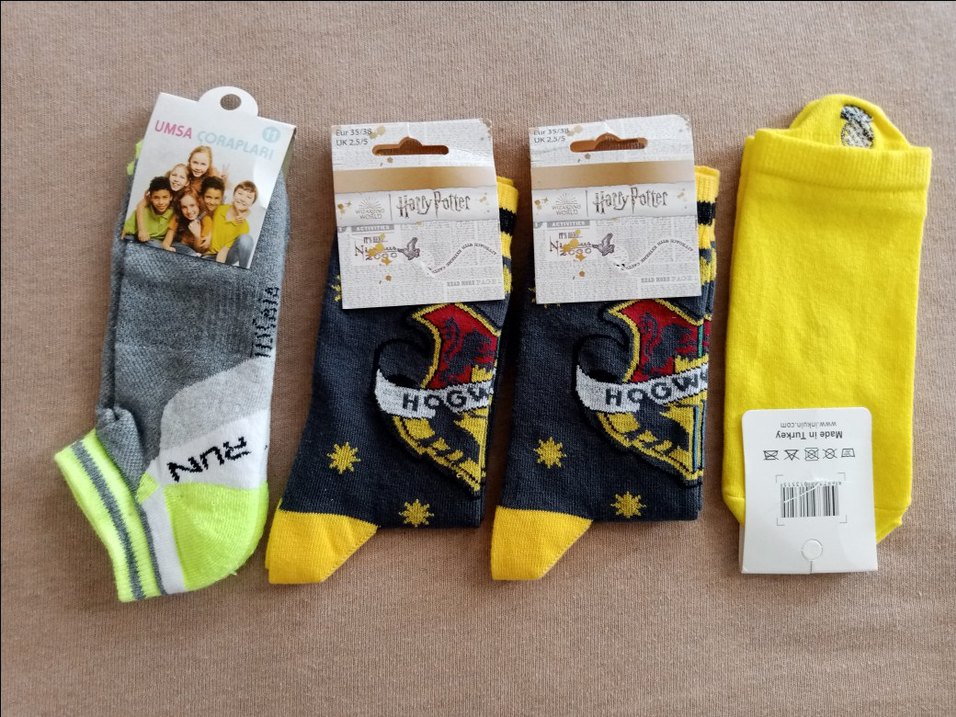 Harry Potter temalı baskılı, koyu sarı erkek çorapları, yumuşak ve rahat.