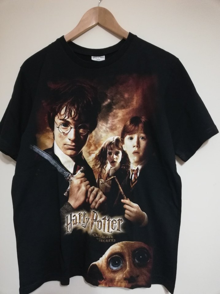 Pamuk kumaştan, bol kesim, kısa kollu siyah unisex tişört. Önünde Harry Potter baskısı ve bisiklet yaka bulunur. L beden bol kesim unisex t tshirt 1 kez giyildi. Temiz ve çok iyi durumda.