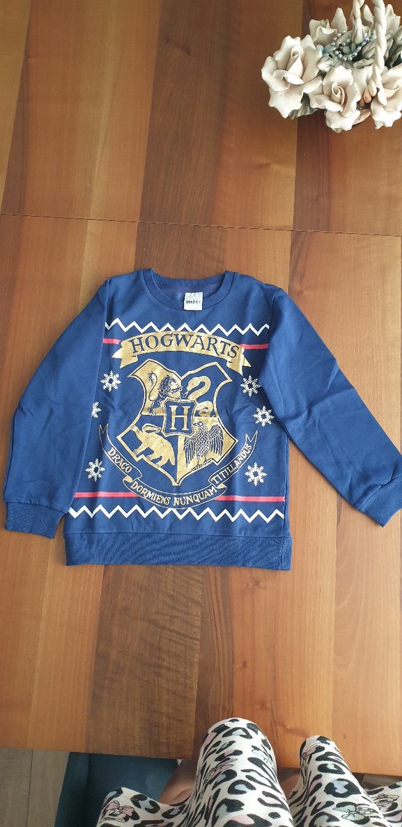 Mavi renkli, uzun kollu, bisiklet yaka, Hogwarts baskılı erkek çocuk sweatshirtü. Yumuşak, örme tüylü kumaştan, bol kesim ve rahat sokak stilinde. 12-13 yaşa uygundur.